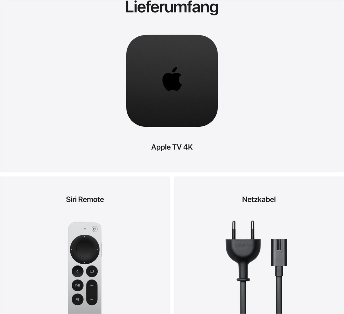 - Siri Remote für präzise Steuerung mit einem Touch-basierten Clickpad