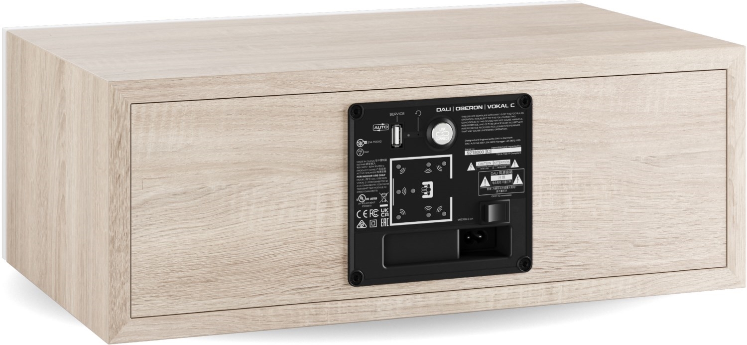 Er beherbergt die ultraleichte 29-mm-Hochtonkalotte und zwei 130 mm (5,25’’) Holzfaser-Tiefmitteltöner auf SMC-Basis. Um den VOKAL C auch in einem Regal direkt ober- oder unterhalb des TV-Geräts platzieren zu können, befindet sich seine Bassreflex-Öffnung mittig in der Schallwand.