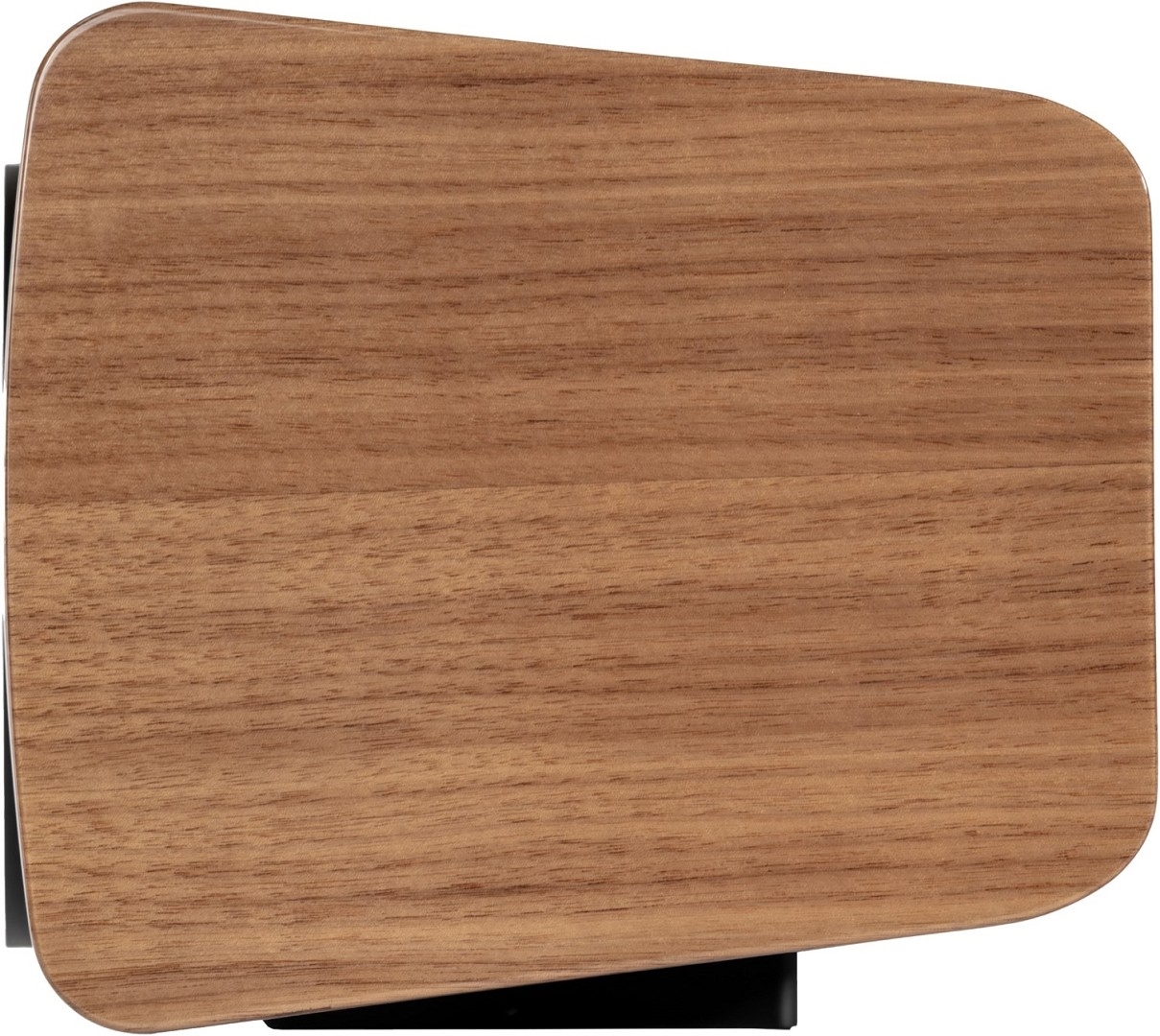 Ihr Design ist augenfällig: hochwertig lackierte oder furnierte Gehäuse, trapezförmig und nach hinten geneigt, treffen auf Aluminium. Große Radien an den Gehäusekanten und die konvex geformte Schallwand fangen das Umgebungslicht und erschaffen optische Tiefe.
