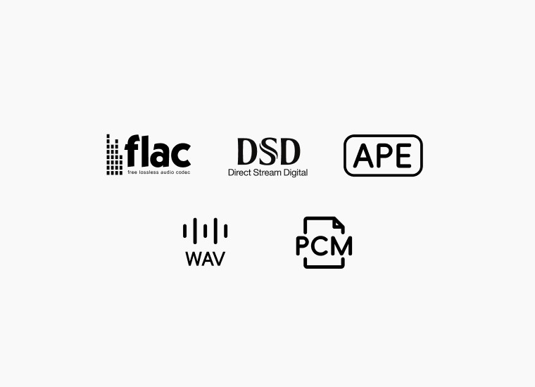 - Unterstützte Musikdateiformate: DSD (DSF, DFF, SACD ISO; unterstützt DST bis DSD512), MP3, APE, WAV, FLAC, AIF, AIFF, AAC, NRG, CUE