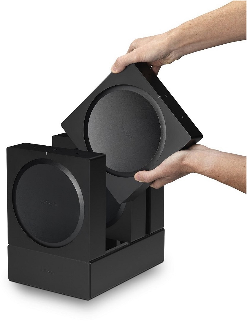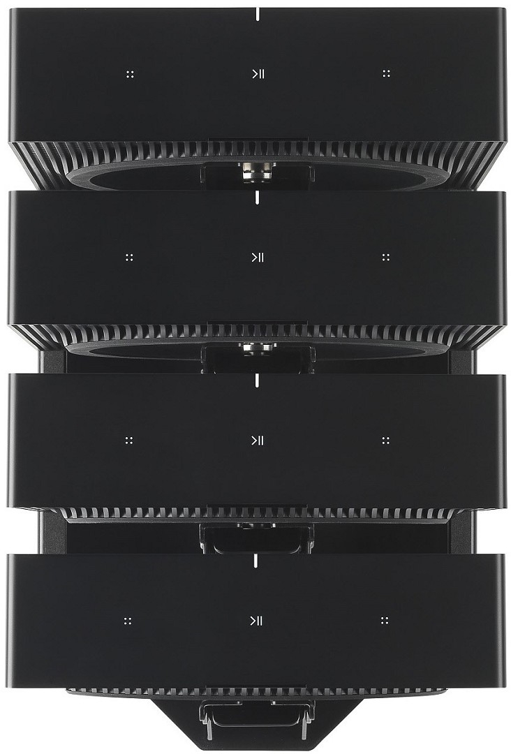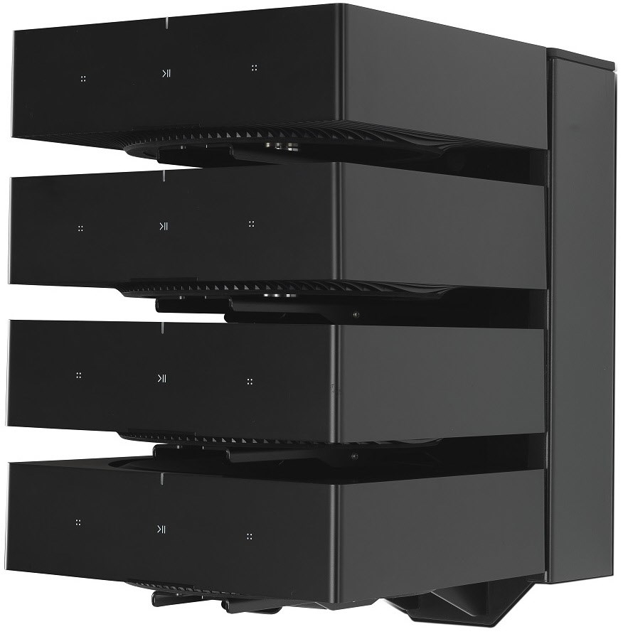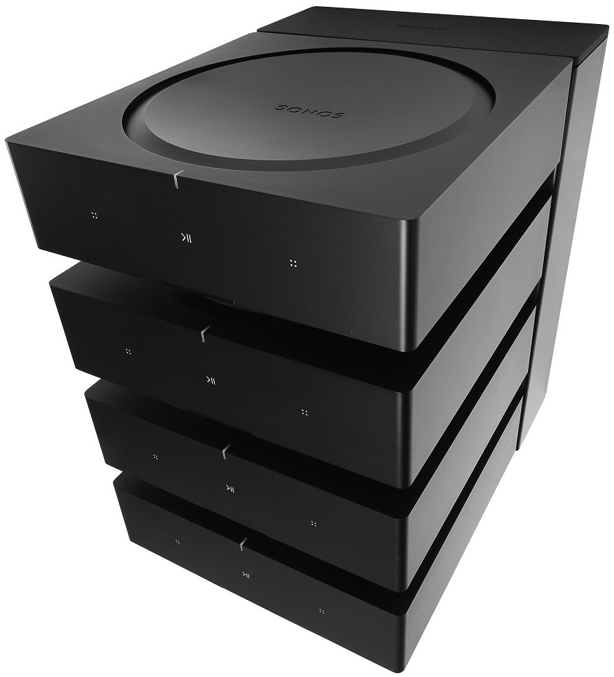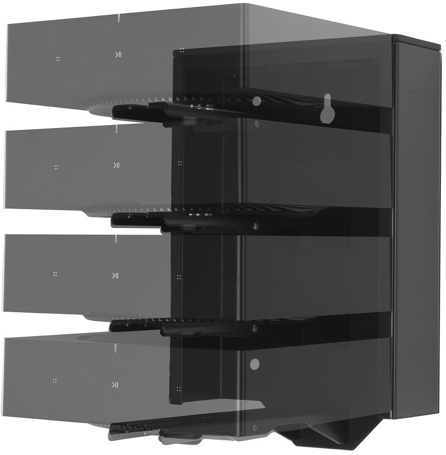 - Hält vier Sonos Amp zusammen mit verdeckter Kabelführung