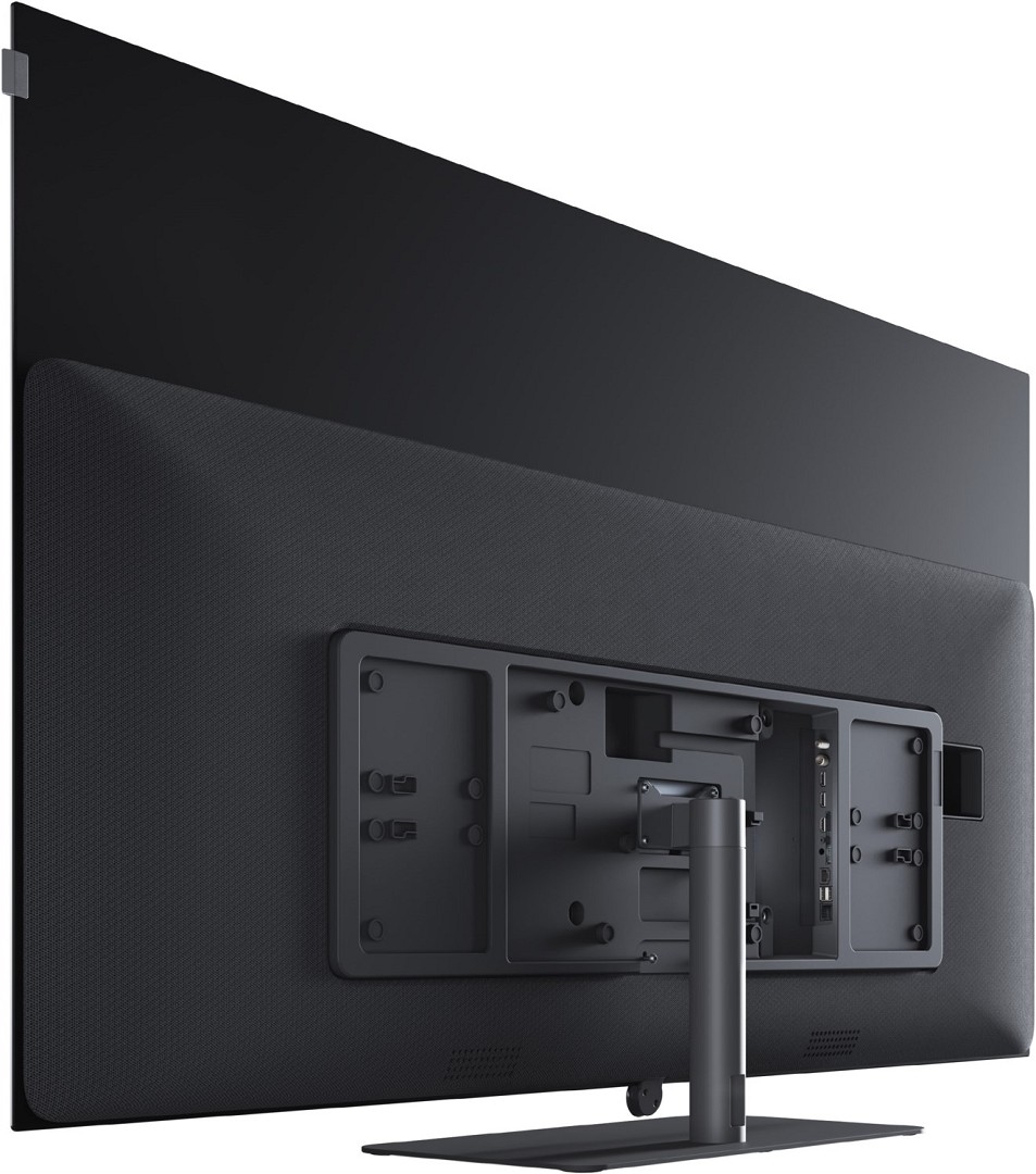 Das raffinierte Design mit Kabelmanagement, Kabeltunneln und abnehmbaren magnetischen Rückwandabdeckungen, verdeckten Anschlüssen und einem basaltgrau lackierten und teilweise mit Stoff bezogenen hinteren Gehäuse ist kompromisslos und unvergleichlich in der Branche. Die mechanische Konstruktion ist sowohl clever als auch robust, mit soliden VESA-Domen, die in der inneren Metall-Struktur des Sets verankert sind, und einer massiven Tischplatte aus Metall einschließlich eines drehbaren Standfußes mit vollständig versteckten Kabelführung. Optionales Zubehör und Aufstelllösungen wie floor stand flex, floor2ceiling stand oder verschiedene wall mountsermöglichen eine individuelle Anpassung an Ihre Wohnräume.