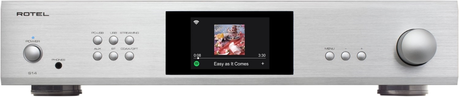 Der S14 ist komfortabel und intuitiv zu bedienen und unterstützt sowohl kabelgebundene als auch Dual-Band- WLAN-Netzwerkverbindungen für ultimative Flexibilität bei der Installation. Auf dem Farbdisplay an der Vorderseite werden Albumcover, Titel und Künstlerinformationen angezeigt. Eine einfache Einrichtung und Konfiguration des Geräts wird über das Bedienfeld und die mitgelieferte Fernbedienung gewährleistet.