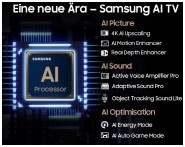 - Der Neural Quantum 4K AI Gen2 Prozessor des Samsung Fernsehers sorgt mit AI und 20 neuronalen Netzwerken für ein atemberaubendes Seherlebnis