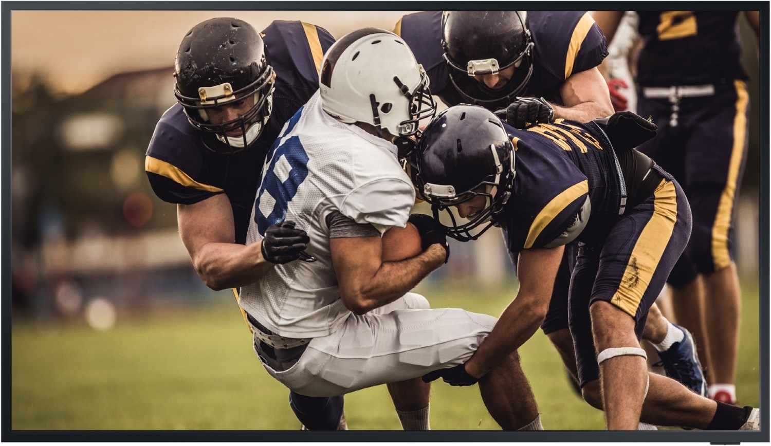 The Terrace QLED 4K TV bietet mit 100% Farbvolumen Szene für Szene brillante und detailreiche Bilder. Und dank einer beeindruckend schnellen Bildwiederholrate können selbst extrem rasante Szenen flüssig dargestellt werden – egal ob beim Gaming, Sport-Events oder Filmen.