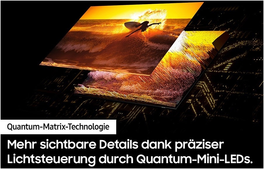 Dank der Quantum-Matrix-Technologie eröffnen sich dir faszinierende Bildwelten voller Kontraste und Details. Weiterhin werden besonders tiefe Schwarz- und reine Weißtöne erzeugt, indem die leistungsstarke Beleuchtungssteuerung die einzelnen Quantum-Mini-LEDs mit größtmöglicher Genauigkeit ansteuert.