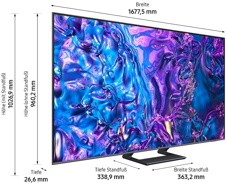 * Die Bandbreite der Quantum-HDR-Helligkeit basiert auf internen Teststandards. In Abhängigkeit von Betrachtungsbedingungen und Spezifikationen sind Änderungen vorbehalten. Das Seherlebnis kann je nach Inhalt und Format variieren.