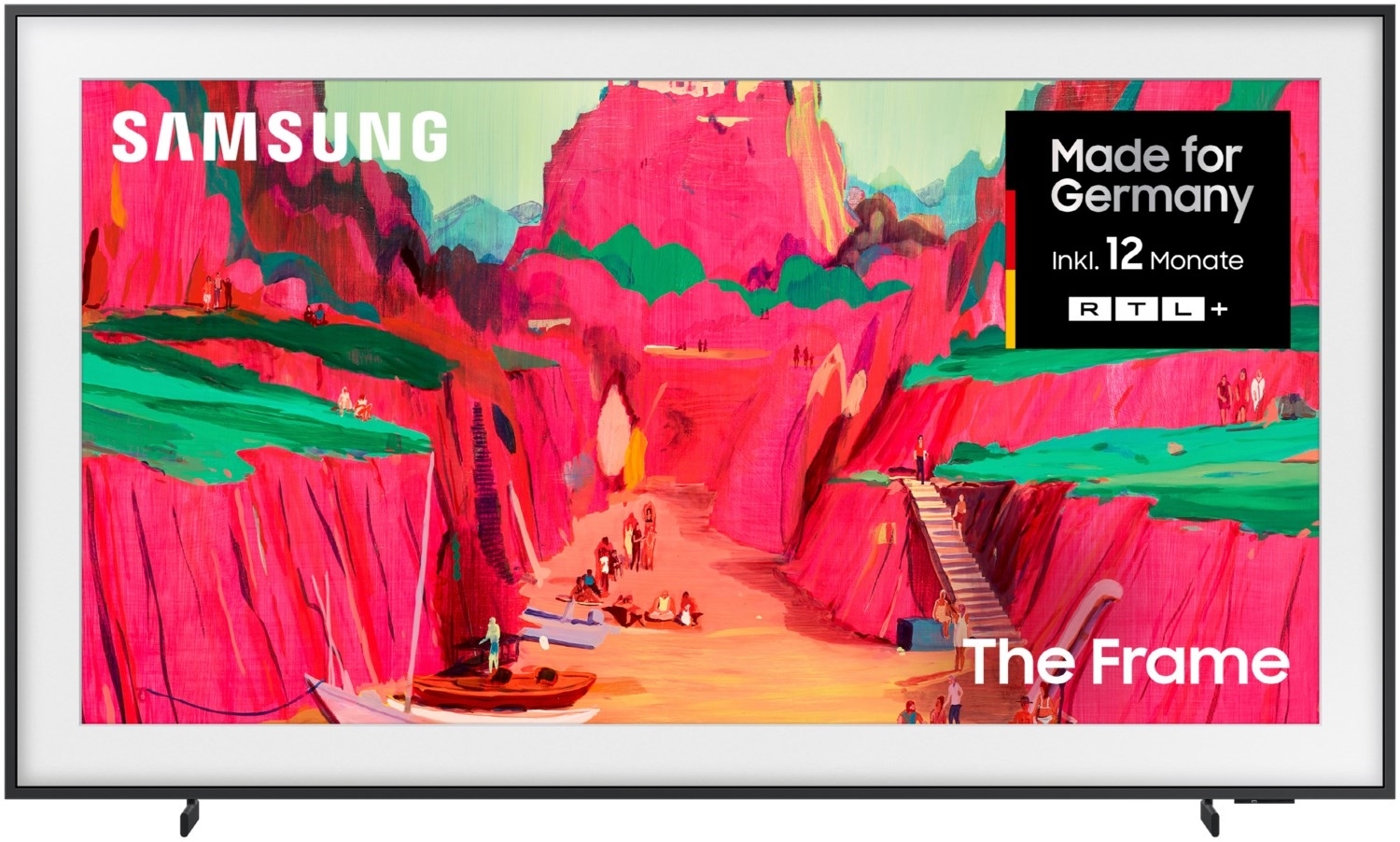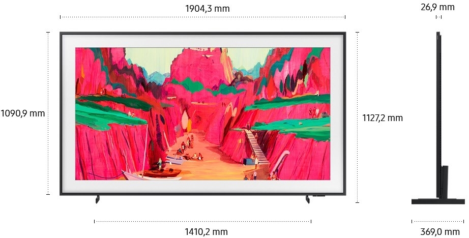 - Verwandle mithilfe des Art Modes deine Wohnung in eine virtuelle Kunstgalerie mit wechselnden Kunstwerken, wenn du gerade nicht Fernsehen guckst