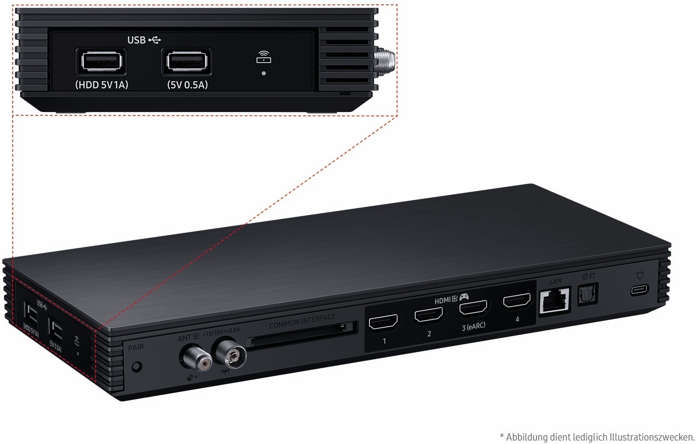 - Verbinde mit der Wireless One Connect Box externe Geräte optisch elegant ohne Kabel