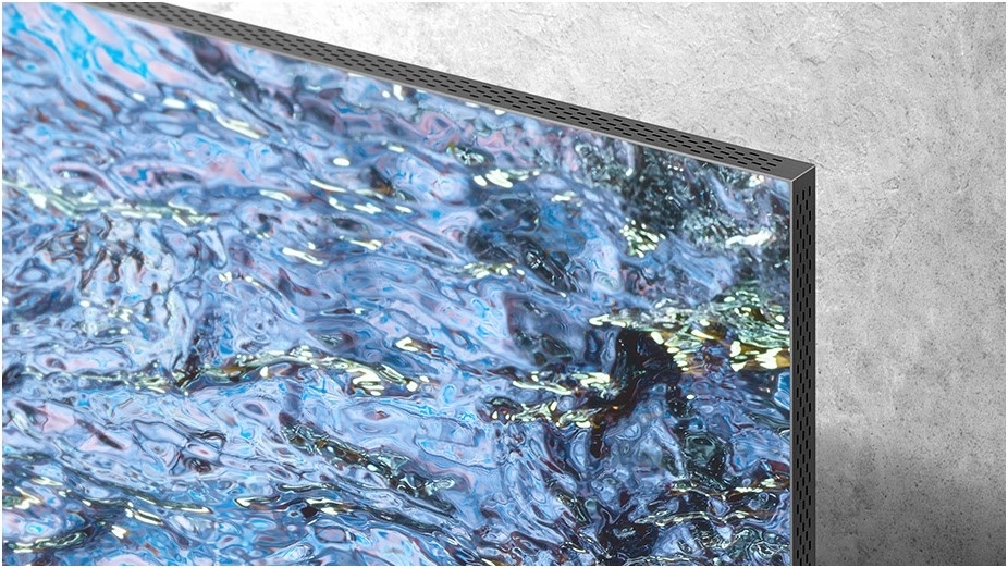 Das minimalistische Design beschert dir ein eindrucksvolles TV-Erlebnis – nahezu ohne sichtbare schwarze Kanten. Der mit 0,8 mm extrem dünne Rahmen sorgt dafür, dass du bis zu 99 % der Bildschirmfläche sehen kannst – ein grenzenloses TV-Erlebnis.