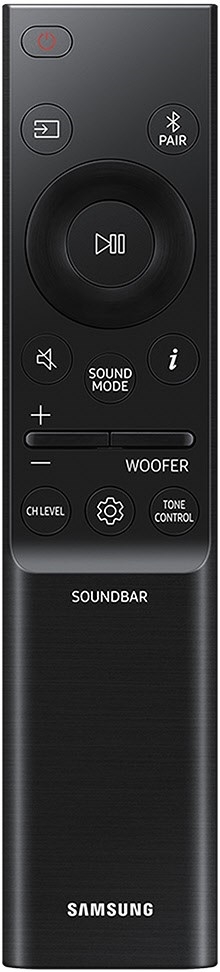 Samsungs Q-Soundbar HW-Q710GD beherbergt neun Lautsprecher. Für sehr tiefe Frequenzen ist ein separater 6,5"-Subwoofer zuständig, der wuchtige und trockene Bässe beisteuert, ohne zu wummern oder zu dröhnen. Mit gutem Raumklang von FilmSoundtracks wächst die schlanke Soundbar über sich hinaus und zaubert eine erstaunlich große Raumabbildung.