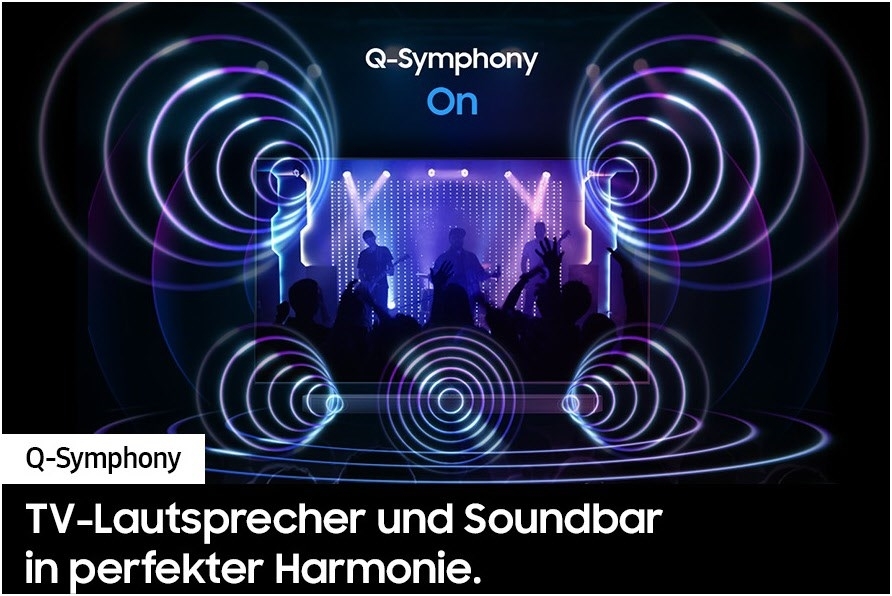 - Mit Q-Symphony die Lautsprecher des TVs und der Soundbar perfekt aufeinander abstimmen