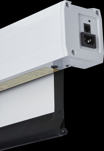 - Elektrische Lichtbildwand PRO mit fester Bildmaskierung im Format 16:9.