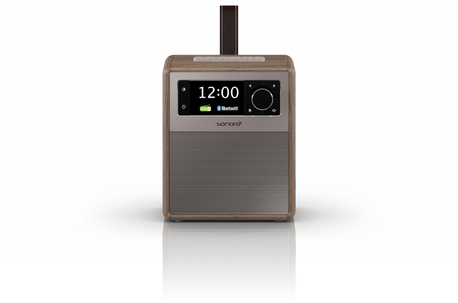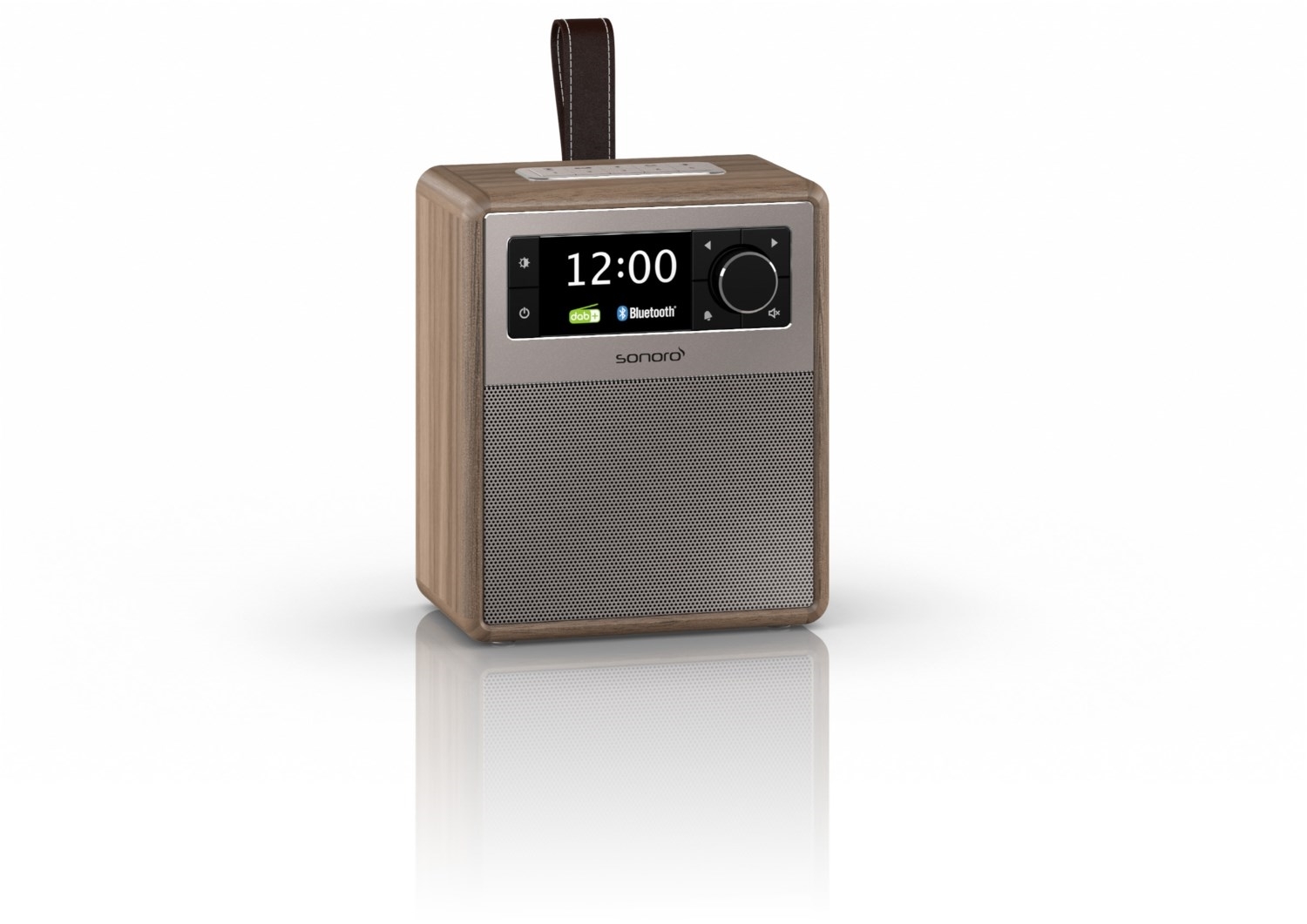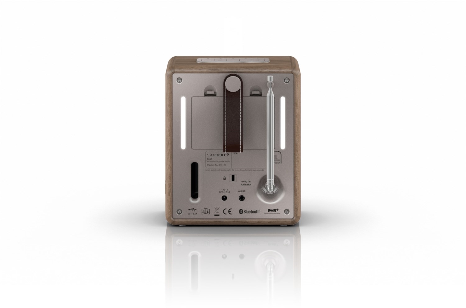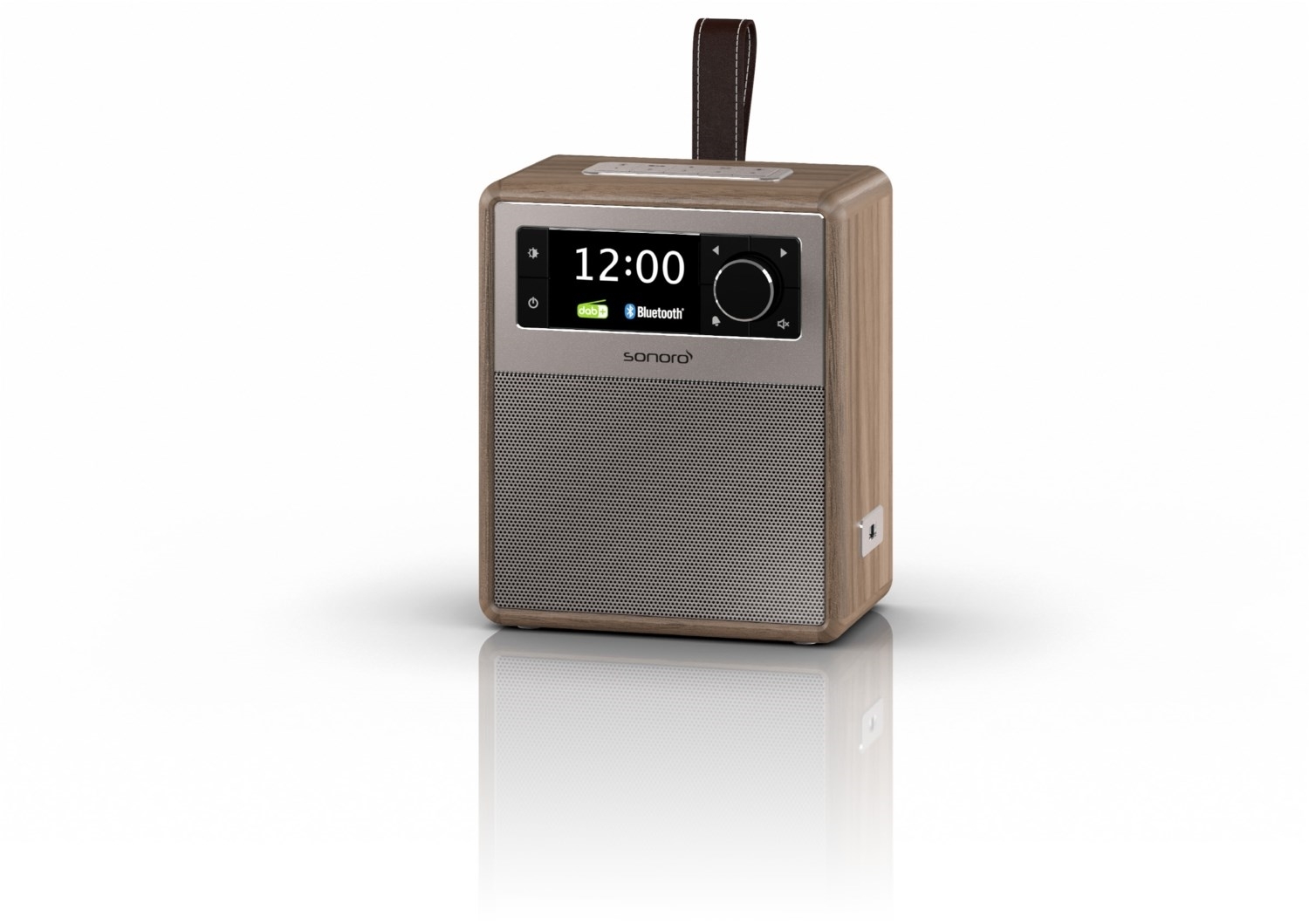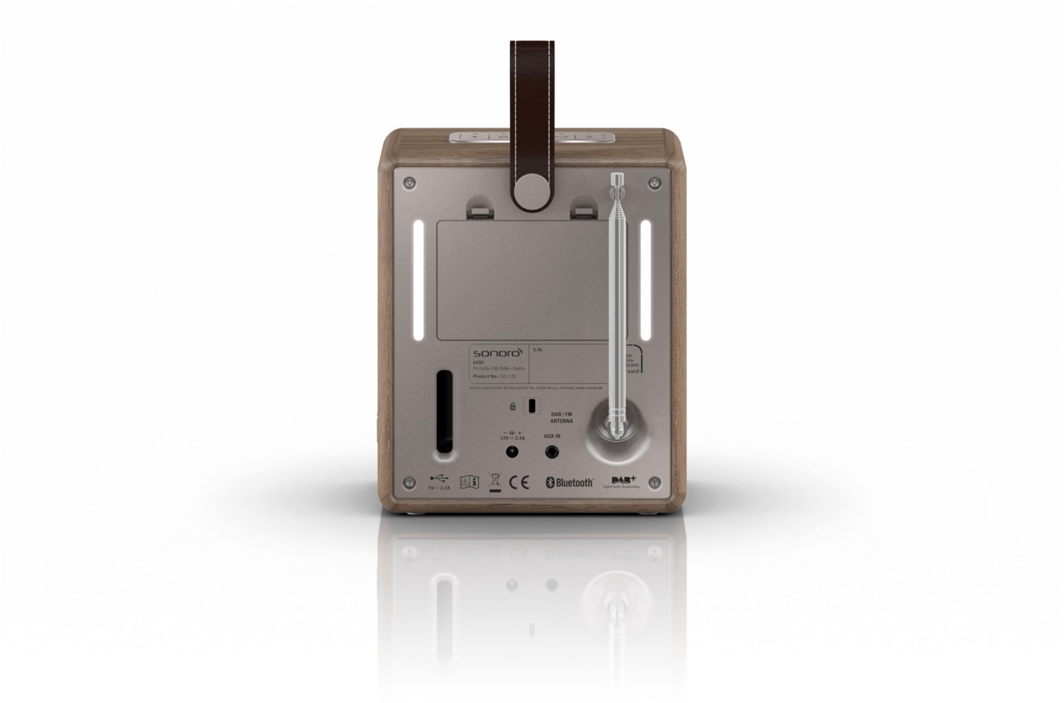- Tragbares Musiksystem mit Trageschlaufe aus echtem Leder