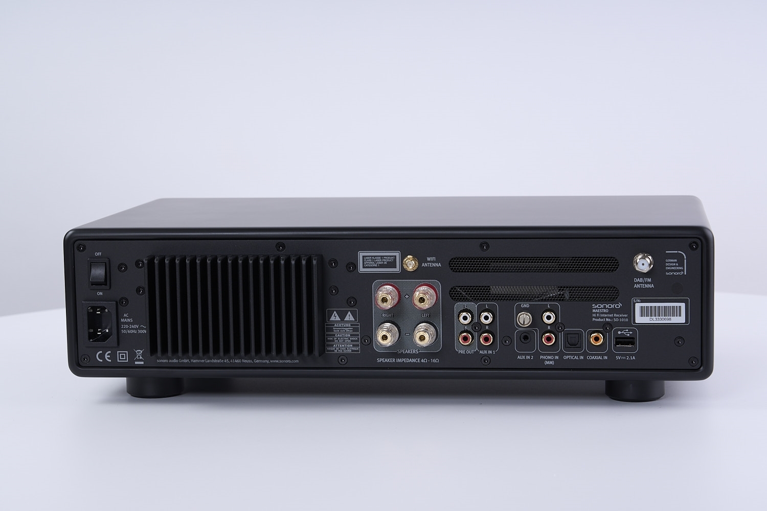 Zusätzlich bietet MAESTRO einen optischen und einen Koaxial-, sowie einen Phono-Anschluss (MM). Bedient wird direkt am Gerät, über die Fernbedienung oder per UNDOK™-App.